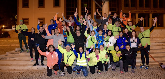 Retomámos hoje a visita ao grupo mais representativo da cidade de Loulé. Grupo aberto, informal, suportado por voluntários dedicados e imaginativos que sabem receber bem. Na foto acima espelha-se essa característica. No largo do tribunal, quando da foto de grupo, passava ao largo um grupo de marcha de funcionários da Câmara Municipal. Imediatamente os responsáveis dos Cool Runners os convidaram para se juntarem a nós na foto de grupo, convite prontamente aceite. E foram uns segundos de sã convivência, uma união à volta de um interesse que todos partilham - a prática de exercício físico. Foram uns momentos muito bonitos e agradáveis.