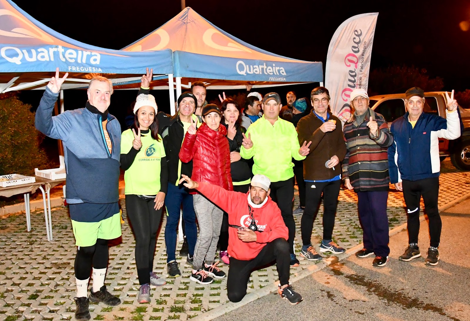 Brincamos, sem qualquer intenção malévola ou depreciativa, claro. Este grupo de amigos que hoje nos brindou com esta realização, são uma certeza e um grupo muito original. Não pretendem ser mais que os outros, não almejam bater records de frequência, não querem ser melhores nem piores. São originais e isso é que conta. Reunem-se às terças feiras, onde lhes apetece e correm e marcham à "vontade do freguês", mas com um cuidado redobrado, cumprindo integralmente a máxima "ninguém fica para trás e sozinho". São dirigidos por um colégio vasto mas bem democrático (foto ao lado), onde todos têm uma palavra, onde todos deliberam e decidem sem atropelos, sem ditaduras. Como nestas coisas há sempre um líder, ou dois, neste caso temos o José Maria Casanova e o Sérgio Sousa que são uma espécie de Presidentes da Assembleia da Republica que ouvem, colocam as moções na mesa e aceitam as decisões dos excelentíssimos deputados. Hoje, ocupando um furo no calendário do Corridas, proporcionaram-nos uma organização exemplar a que não faltou uma visita aos campos desconhecidos de Vilamoura e, no final, a degustação de bolo rei e chá bem quente, oferta da Pastelaria DuoDoce. Oferta bem simpática e merecedora de uma visita de agradecimento. A Pastelaria fica perto do Centro Autárquico de Quarteira.